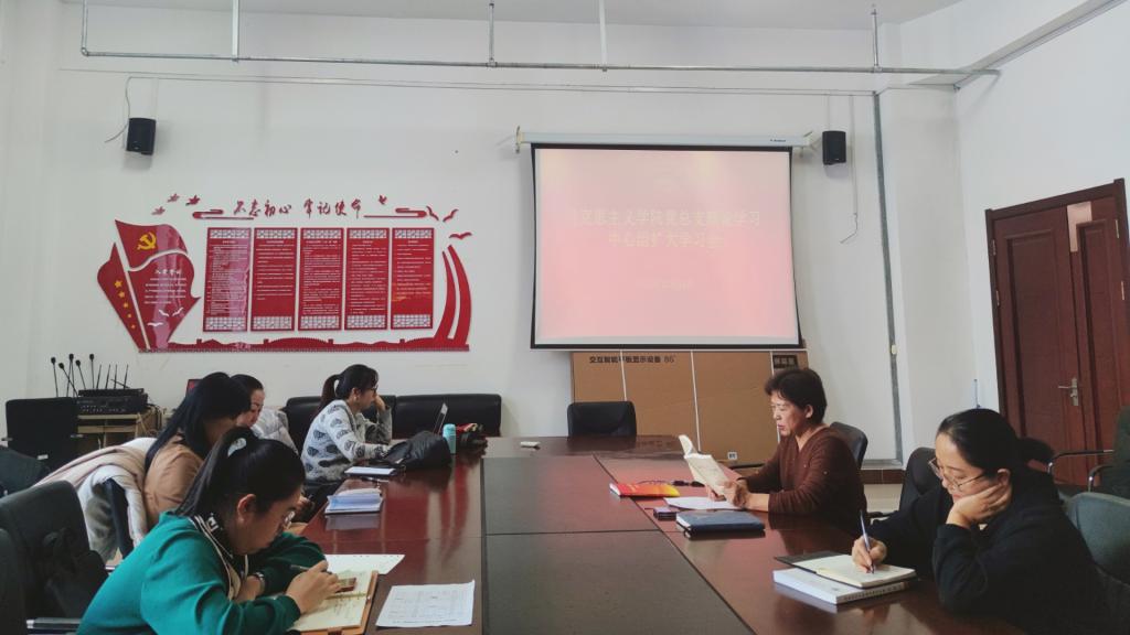 12月13日下午,beat365唯一官方网站党总支在崇文楼B123会议室召开beat365唯一官方网站党总支理论学习中心组扩大学习会,学院党总支书记刘凤琴主持会议,学院全体教师参加学习。