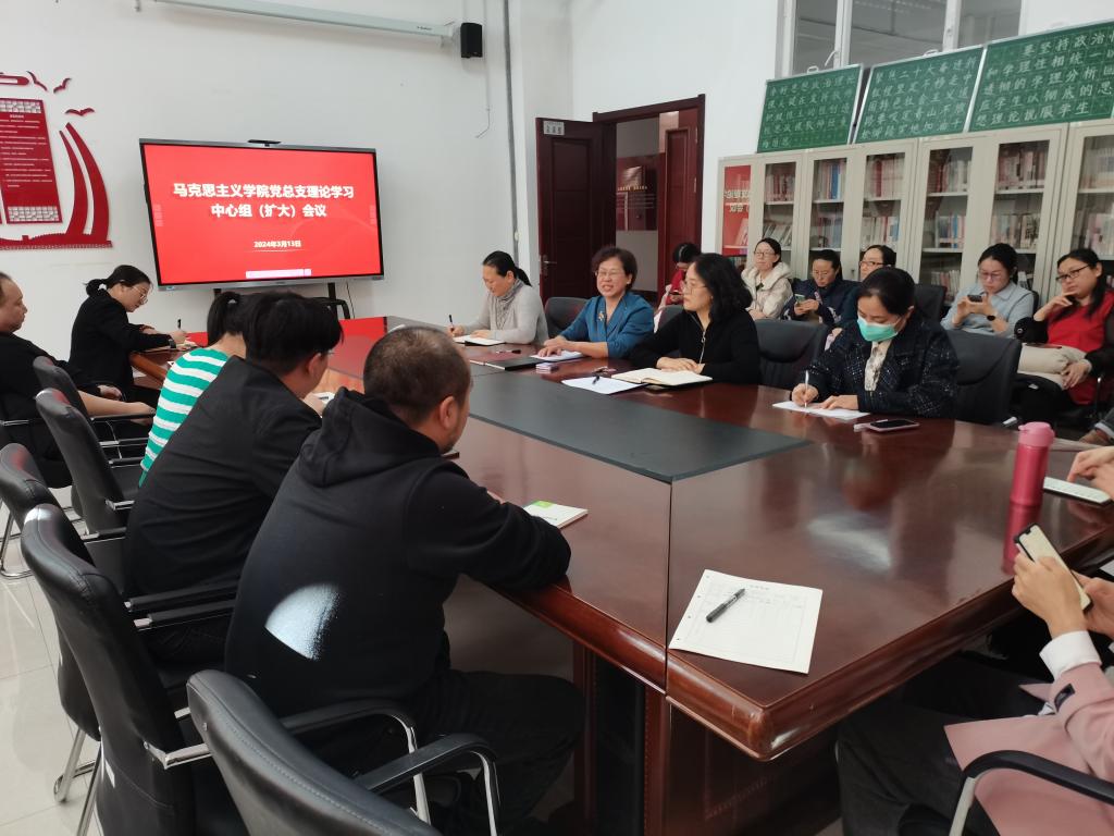 为深入学习贯彻全国两会精神,提高思政课教师政治素养和综合素质,3月13日下午,beat365唯一官方网站党总支在崇文楼B座123会议室召开beat365唯一官方网站党总支理论学习中心组(扩大)学习会议,学院党总支书记刘凤琴主持会议,学院全体教师参加。