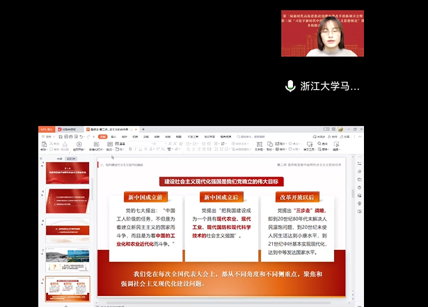在“以中国式现代化全面推进中华民族伟大复兴”专题中,北京大学XPJ官方网站副教授、研究员陈文旭和浙江大学XPJ官方网站讲师伏佳佳分别以“党的二十大报告对中国式现代化的创新发展”“中国式现代化”为题目进行了主题发言。XPJ官方网站XPJ官方网站习近平新时代中国特色社会主义思想概论教研部主任、副教授李平对2位发言人的发言内容予以点评。