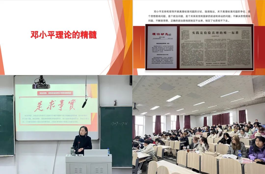 3个学院的领导班子成员和教师代表在2号教学楼400教室听取了XPJ官方网站罗琦老师讲授的“毛泽东思想和中国特色社会主义思想理论体系概论”课程,授课内容是“邓小平理论的精髓”。罗琦老师从历史背景出发,阐释邓小平理论是对毛泽东思想的继承,具有鲜明的时代特征。邓小平同志坚持用科学的世界观和方法论观察、思考和解决新时期的重大理论和实践问题,坚持从中国客观实际出发,开展真理标准大讨论,进行拨乱反正,把党的工作重心转移到经济建设上来。在长期实践中形成的邓小平理论对中国特色社会主义理论体系的形成发展起到了奠基、开创和指导作用。罗琦老师教学结构层次清楚,条理清晰,容量适度,教学重点明确,难点把握准确,教学风格沉着自然,有张有弛。本次授课班级的学生来自教育科学研究院应用心理学专业和现代农业与生态环境学院农业资源与环境专业,同学们聚精会神听讲,和老师保持适当互动,参会人员深入课堂一线认真听课,深刻体验了常态化思政课堂的教学效果。