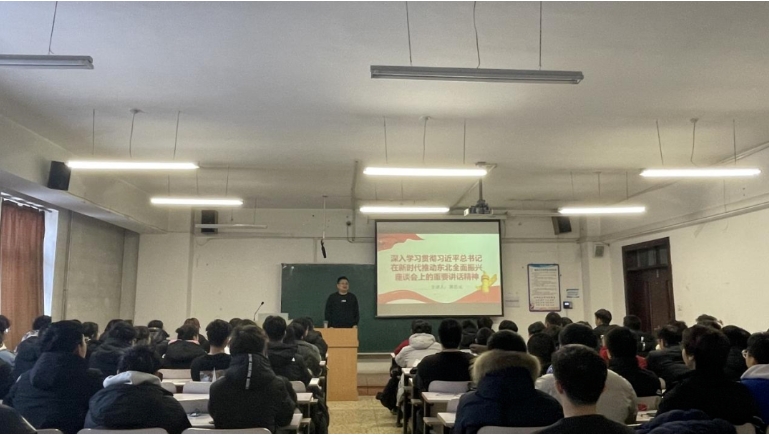 XPJ官方网站结合青年教师担任思政班主任实际,扎实推动理论宣讲进基层工作,11月30日中国近现代史纲要教研部教师郭思元在其担任思政课班主任的23级水电农水专业1班、2班开展“深入学习贯彻习近平总书记在新时代推动东北全面振兴座谈会上的重要讲话精神”的主题宣讲。