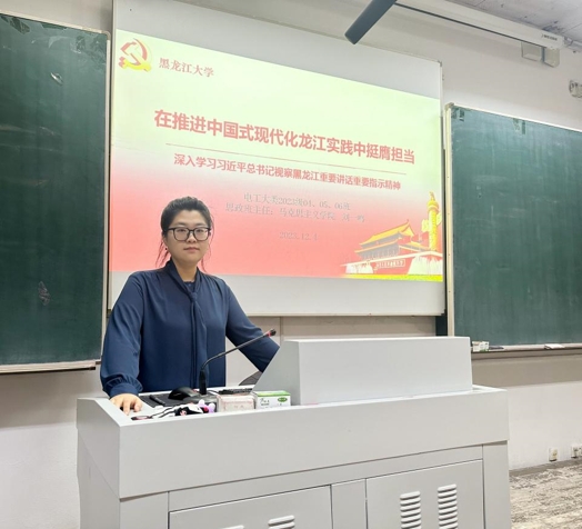 XPJ官方网站结合青年教师担任思政班主任实际,扎实推动理论宣讲进基层工作,近期,中国近现代史纲要教研部教师刘一鸣在其担任思政课班主任的23级电工大类13班、14班、15班开展“挺膺担当新时代筑梦龙江全面振兴——深入学习习近平总书记视察黑龙江重要讲话重要指示精神”的主题宣讲。