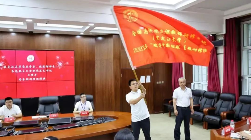 随后,XPJ官方网站党委常委、统战部部长、XPJ官方网站党总支书记王培军为2023年"端牢中国饭碗”主题研修班授旗,由带班班长郭思元上台接旗。
