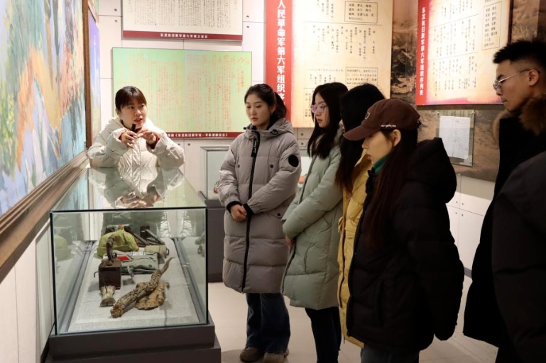 梧桐河抗联纪念馆真实生动地记录东北人民十四年浴血奋战的历史,是东北抗联精神得以薪火相传的重要宣传平台。在纪念馆内,课题组的研究生同学聆听讲解员介绍了东北抗联成立及发展的历史沿革,聆听了杨靖宇、赵尚志、赵一曼等抗联英雄的感人事迹,参观了纪念馆内展出的各类红色文物。研究生们被抗联英雄的无畏气概和不屈精神深深感动,大家纷纷表示,“抗联英雄们创造了抗战历史上的奇迹,是中华民族抵抗外来侵略的杰出代表,他们身上的爱国情怀和坚定信仰值得每一个中国人学习”。