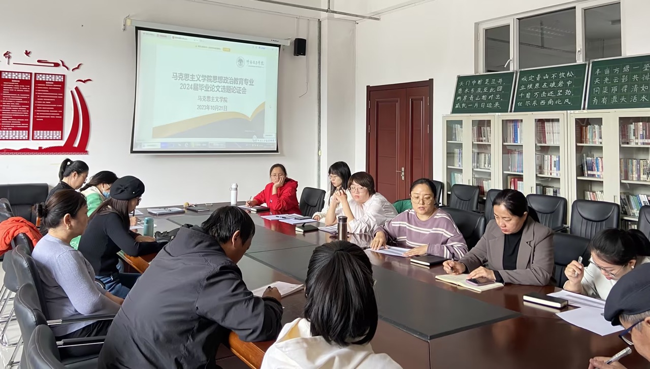 为进一步推进2024届本科毕业生毕业论文工作,提高毕业论文选题质量,确保学生毕业论文高质量完成,10月21日上午,beat365唯一官方网站在崇文楼B123会议室组织召开了2024届思想政治教育专业本科毕业论文选题论证会,思想政治教育专业全体论文指导教师参加了本次会议。