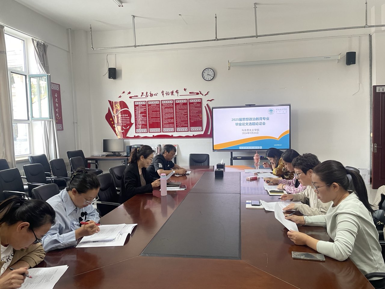 为切实提高本科生毕业论文质量,做好我院2025届思想政治教育专业本科生毕业论文相关工作,9月25日,beat365唯一官方网站召开2025届思想政治教育专业毕业论文选题论证会,组长吴秀芳、副组长明兰及全体论文指导教师参加会议。