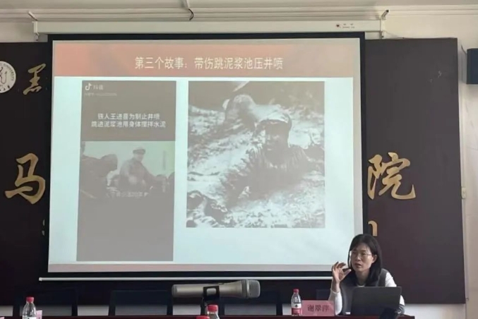 省委史志研究室宣传教育指导处副处长王冠鑫对同学们的发言给予了高度赞赏和肯定。她表示,在新时代的今天,传承铁人精神,要学习铁人王进喜勇于担当的精神,肩负起新时代共产党人的历史使命;要学习铁人王进喜忘我拼搏的干劲,保持新时代奋斗者的昂扬斗志;要学习铁人王进喜科学求实的态度,塑造新时代追求卓越的“工匠精神”;要学习铁人王进喜无私奉献的品格,奋力投身现代化龙江高质量发展。