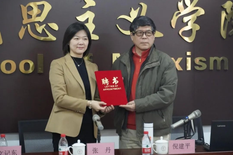 讲座开始前,XPJ官方网站副院长文记东主持聘书颁发仪式,由XPJ官方网站党总支书记张丹为倪建平教授颁发“XPJ官方网站中共党史党建研究院、中共党史党建学科特聘研究员”的聘书。