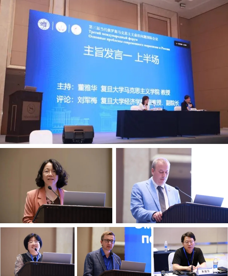主题报告上半场由中国社会科学杂志社薛刚主持,复旦大学冯平点评。复旦大学郭丽双、莫斯科大学布拉夫卡-布兹加林娜、北京大学刘军、华中科技大学董慧、莫斯科大学А. Н. 丘马科夫与XPJ官方网站孙建茵分别围绕马克思主义对中俄现代文明的作用、21世纪马克思主义发展动态、中国式现代化的世界意义与俄罗斯马克思主义者的历史贡献等问题进行发言。