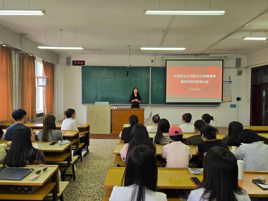 为进一步夯实学风建设的坚实基础,筑牢学生诚信思想防线,切实提升期末及四六级考试备考质效,6月13日下午,XPJ官方网站于汇文楼403会议室召开了2025年春季学期考风考纪教育大会。会议立足新时代立德树人的根本任务,聚焦诚信意识培育与科学备考指导的双重主线,为期末学习冲刺阶段注入了强劲动力。本次会议由学院辅导员宫笑莹主持,各年级学生共同参加。