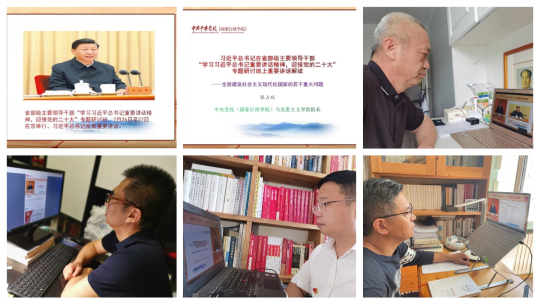 为深入学习宣传贯彻习近平总书记在省部级主要领导干部“学习习近平总书记重要讲话精神,迎接党的二十大”专题研讨班上重要讲话精神,深刻领会新时代坚持和发展中国特色社会主义的重大理论和实践问题,进一步统一思想、凝聚共识,迎接党的二十大胜利召开,XPJ官方网站党总支在暑期,严格按照学校党委宣传部的相关要求,采用网络学习的形式,积极开展党总支理论中心组(扩大)学习和党员学习活动,全体同志认真听取了中共中央党校、国家行政学院XPJ官方网站院长张占斌教授题为《全面建设社会主义现代化国家的若干重大问题》的专题讲座。