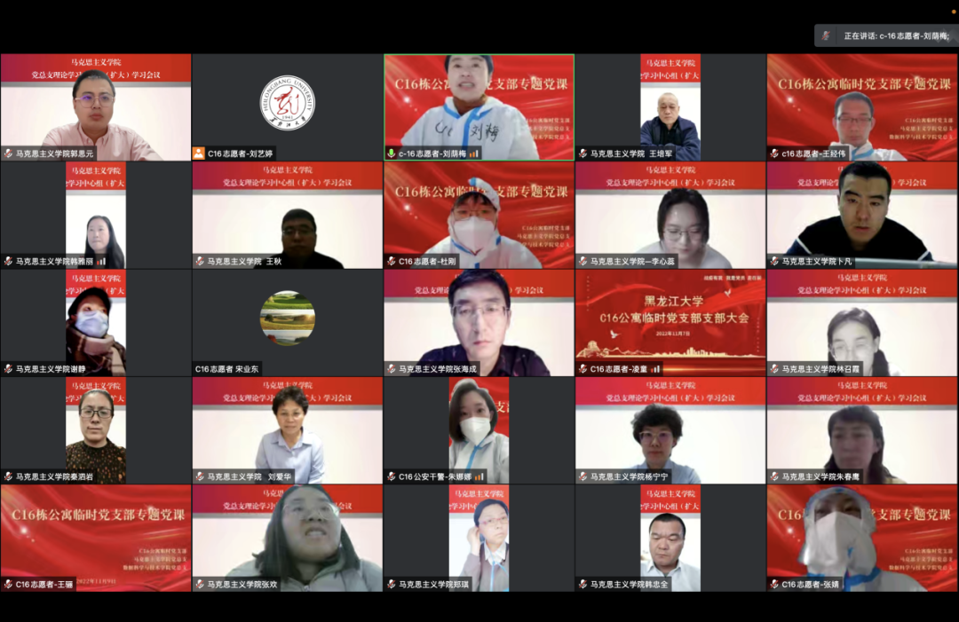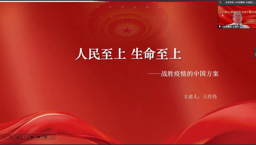 为深入贯彻落实习近平总书记关于疫情防控的重要指示精神,更好地贯彻落实中央、省委、省委教育工委、学校党委关于疫情防控的工作部署,XPJ官方网站等多部门联合组织开展了疫情防控专题党课学习活动。11月9日晚7时30分,XPJ官方网站党总支书记王培军和院长王秋带领学院党总支理论学习中心组(扩大)成员及全体思政课教师同数据科学与技术学院全体教师、市政府派驻C16公寓工作组成员、C16公寓临时党支部成员共百余人以线上会议的方式齐聚云端进行了专题党课学习。专题党课由数据科学与技术学院党总支书记刘荫梅主持,进驻C16公寓楼的抗疫志愿者、C16临时党支部委员、XPJ官方网站青年教师王经伟在抗疫一线作了题为“人民至上,生命至上——战胜疫情的中国方案”的专题党课讲授。