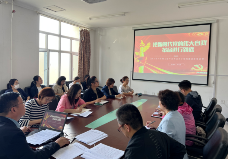 党支部书记文记东作了题为“把新时代党的伟大自我革命进行到底——深入学习贯彻习近平总书记关于党的建设重要思想”的领学。从党找到了自我革命这一跳出治乱兴衰历史周期率的第二个答案、全面从严治党开辟了百年大党自我革命的新境界、发扬斗争精神,将党的自我革命进行到底等三方面阐释了党的自我革命的重要意义。他强调,要时刻保持解决大党独有难题的清醒和坚定,时刻保持永远在路上的坚韧和执着,进一步增强坚定不移全面从严治党的政治定力,把严的基调、严的措施、严的氛围长期坚持下去,把新时代党的伟大自我革命进行到底。