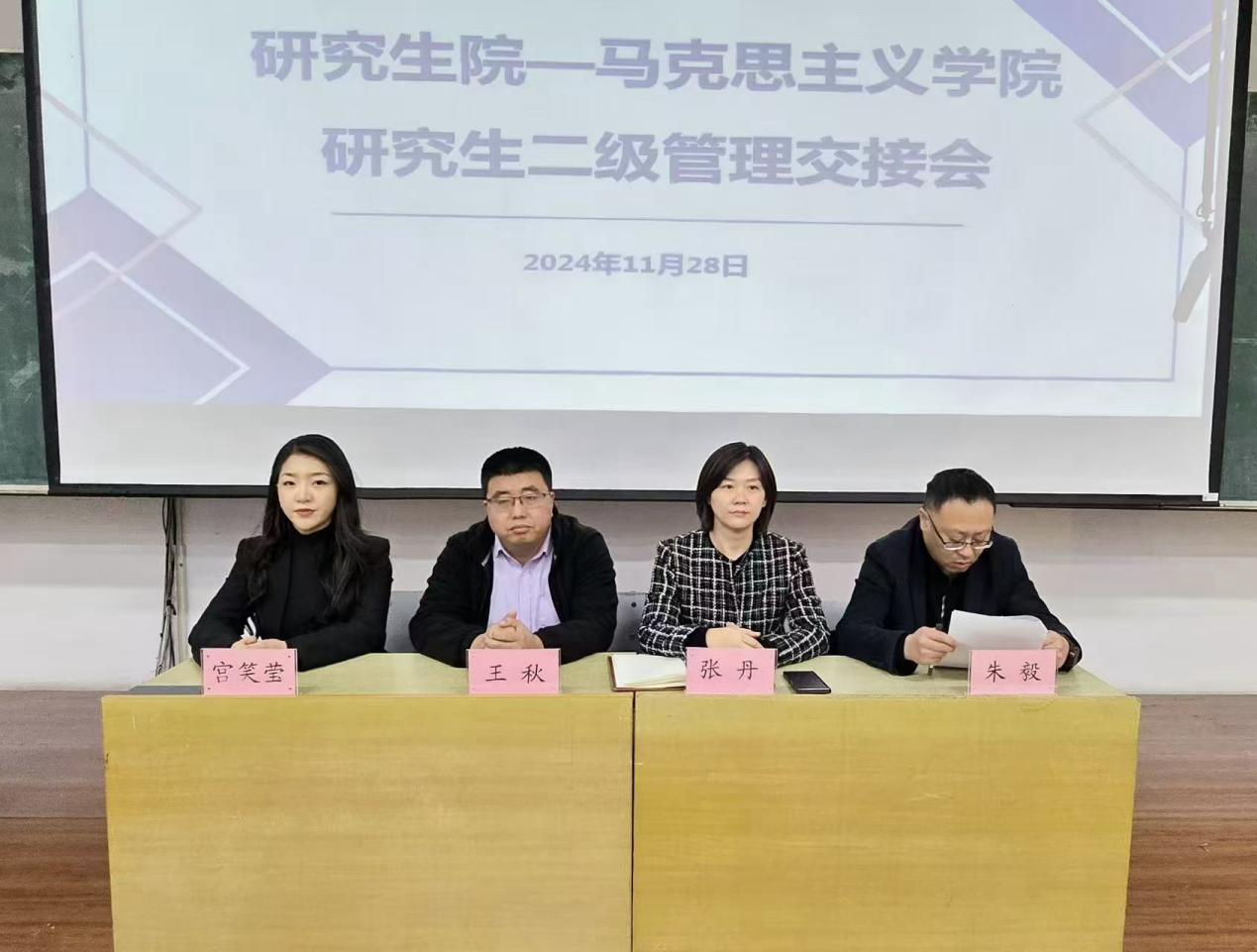 为深入贯彻落实《XPJ官方网站高质量发展行动方案》确定的“研究生分类培养和分级管理”重点任务,扎实推进研究生二级管理工作平稳有序开展,明确相关工作的具体任务和责任分工,11月28日下午,XPJ官方网站与研究生院召开XPJ官方网站——研究生院研究生二级管理工作交接会。XPJ官方网站党总支书记张丹、XPJ官方网站院长王秋、研究生院党委副书记朱毅、研究生院团委书记宫笑莹及XPJ官方网站全体学生参加会议。