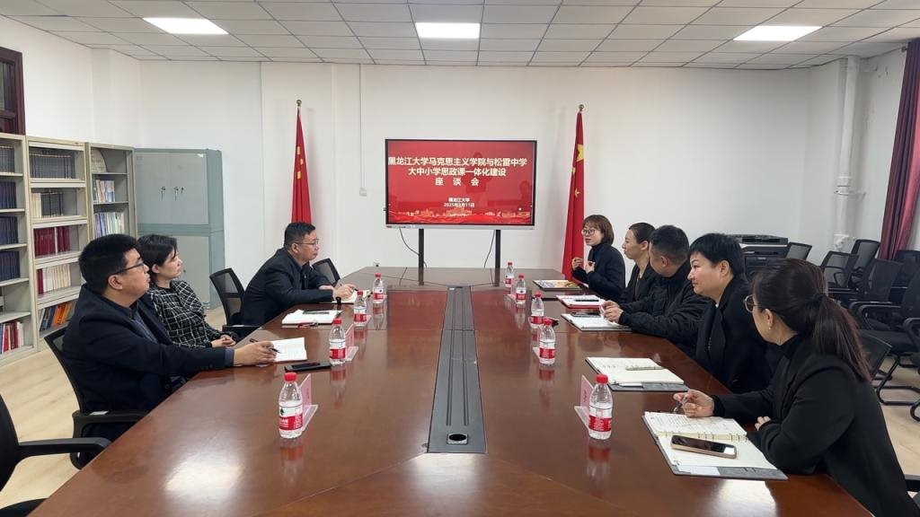 座谈会上,王秋介绍了学院的历史沿革及发展成果,并分享了学院在思政课建设方面的经验与成果。学院坚持以“习近平新时代中国特色社会主义思想概论”课为引领,加强思政课改革创新,并与哈尔滨市教育局共同牵头成立黑龙江省首个大中小学铸牢中华民族共同体意识教育一体化建设联盟,积极探索“1+9*3”模式,通过集体备课、资源共享等方式,推动思政课一体化建设。
