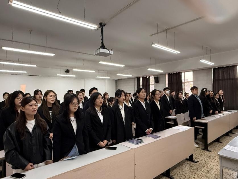 开班仪式第一项,全体师生起立,奏唱国歌。随后,曹秋园宣读《中共XPJ官方网站XPJ官方网站委员会党校第一期入党积极分子培训班实施方案》,宫笑莹向全体学员强调本次入党积极分子培训班的纪律要求,要求全体学员严肃对待本次培训,严格遵守培训纪律。朱毅表示希望全体学员能够珍惜本次学习机会,端正入党动机,认真学习党的理论知识,为入党夯实理论基础,在学思践悟中提高政治素养和理论水平,以实际行动向党组织靠拢。