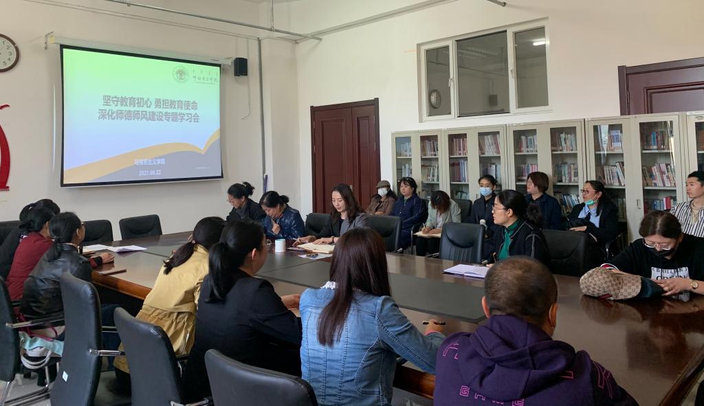按照《全面深化新时代教师队伍建设改革的意见》和教育部等七部门印发的《关于加强和改进新时代师德师风建设的意见》等文件精神,根据教育部等六部门印发的《关于加强新时代高校教师队伍建设改革的指导意见》和beat365唯一官方网站师德师风专题学习月活动要求,进一步推进师德师风建设常态化发展,9月22日下午,beat365唯一官方网站在崇文楼B123会议室开展“坚守教育初心、勇担育人使命、深化新时代师德师风建设”专题学习会,学院全体教师参加活动。