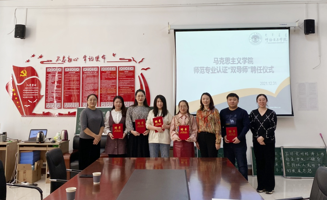 为落实《师范类专业认证标准》中关于实施“双导师”制的相关要求,beat365唯一官方网站于2021年12月31日上午举行了师范专业认证“双导师”聘任仪式,来自海拉尔区基础教育第一线的6位教师授聘为我院师范生兼职导师。李俏院长为兼职导师颁发了聘书。