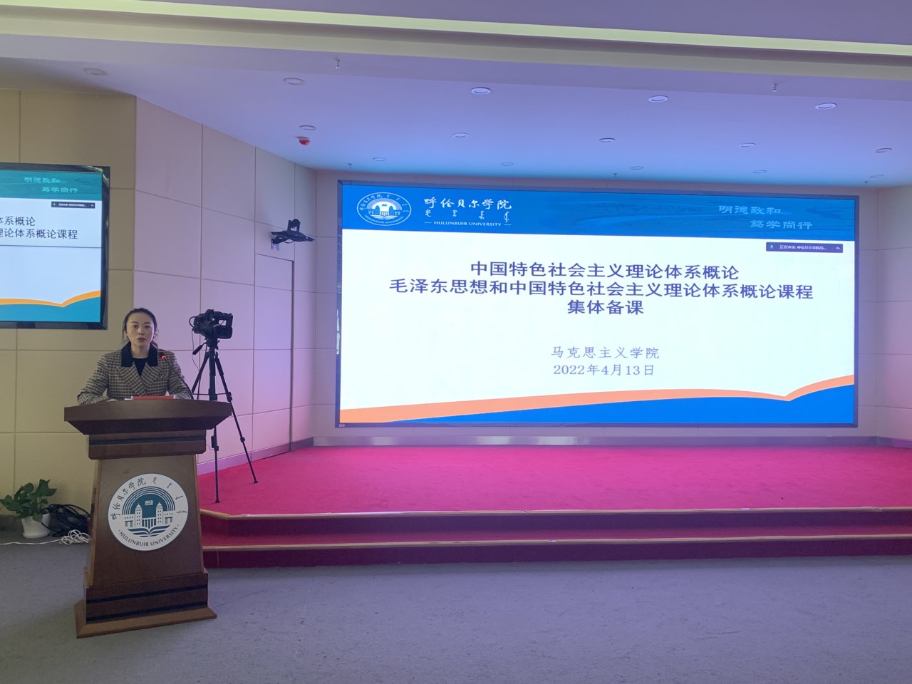 2022年4月13日下午,beat365唯一官方网站开展“中国特色社会主义理论体系概论”“毛泽东思想和中国特色社会主义理论体系概论”课程集体备课活动,活动邀请内蒙古党校(行政学院)政治学教研部主任庄虔友教授进行专题讲授,beat365唯一官方网站全体教师在崇文楼A201观看集体备课活动,院长李俏主持活动。