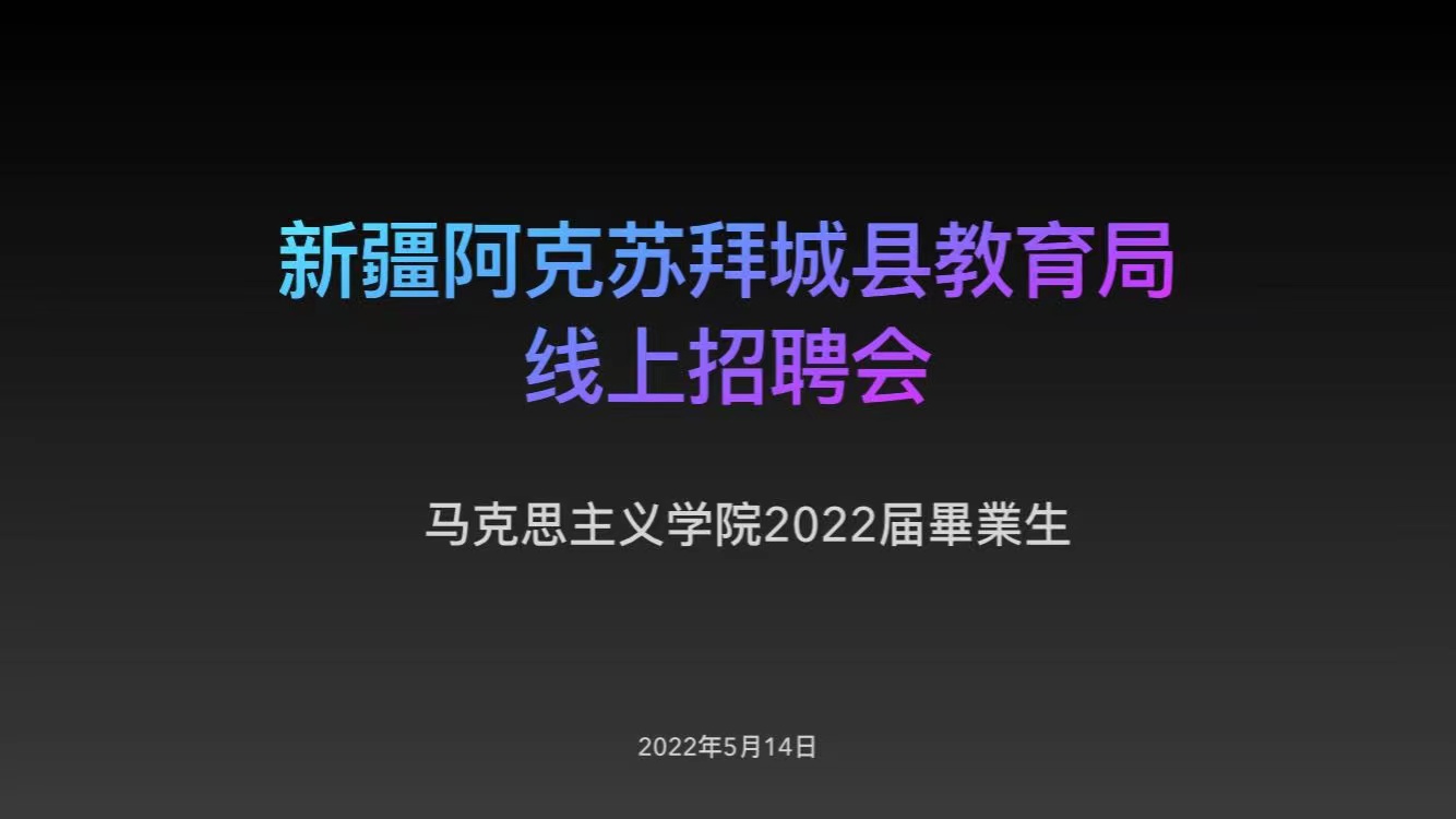 5月14日,beat365唯一官方网站与新疆阿克苏拜城县教育局联合举办线上招聘会。学院党总支副书记刘琳、学工办主任张洪海、辅导员查娜及2022届全体毕业生参加了会议。会上,新疆阿克苏拜城县教育局白龙宇同志介绍了拜城县教育系统2022年招聘的政策及工作领域相关岗位工作特点与发展前景等。beat365官网毕业生冯佳蕊、王秀秀、胡日查和白龙宇在会上分享了就业方面的经验与心得,对毕业后如何更好地走上教师岗位、完善个人简历、获取就业信息、签订三方协议、薪资待遇、晋升空间等方面给予答疑解惑。