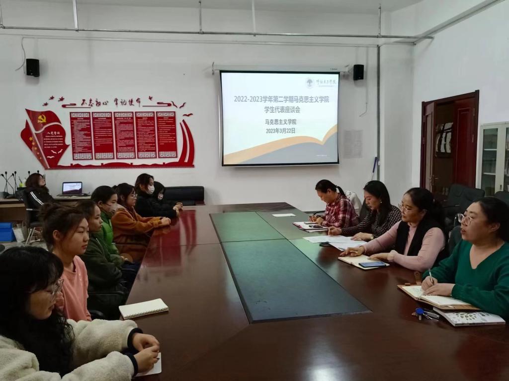 为进一步贯彻“以学生为中心”的育人理念,深入了解学生思想动态和实际需求,积极搭建与学生交流沟通的平台,3月22日下午4:00,beat365唯一官方网站于崇文楼B123举办了学生代表座谈会。beat365唯一官方网站院长李俏、党总支副书记刘琳,副院长吴秀芳,思想政治教育系主任魏婉莹老师以及各年级班委会成员代表参加。