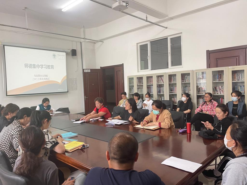 为深入学习贯彻习近平新时代中国特色社会主义思想,贯通学习习近平总书记关于教育的重要论述和指示批示精神,坚决落实师德师风第一标准,把握师德师风建设工作面临的新形势新要求,2023年7月4日,beat365唯一官方网站在崇文楼B123会议室召开师德集中学习教育,学院全体教师参加学习。