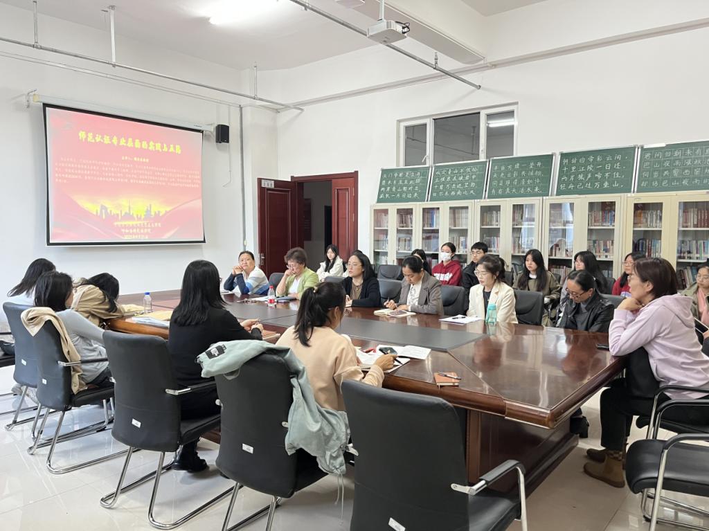为增强我院师生对师范专业认证的了解,加深对师范专业认证工作要点的把握。9月21日下午,我院特邀河北民族师范学院魏沧波教授开展了《师范认证专业层面的实践与反思》主题讲座。本次讲座由学院院长吴秀芳主持,党总支书记刘凤琴、党总支副书记刘琳、副院长明兰、全体专业课教师及部分优秀学生代表出席,在线上共同学习的还有呼和浩特民族学院beat365唯一官方网站的老师。