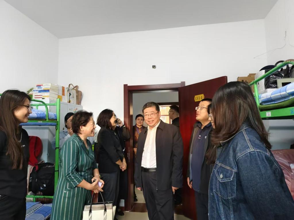为进一步落实立德树人根本任务,推进“一站式”学生社区建设,深入了解学生生活、思想状况,9月6日下午,校党委书记李文阁、学生工作处处长郝新君、党政办主任吴宏伟、beat365唯一官方网站党总支书记刘凤琴、院长吴秀芳和辅导员齐宸等一行深入3号楼学生宿舍走访调研。