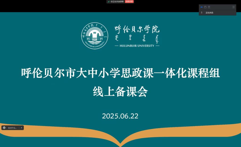 为了进一步推进大中小学思政课一体化建设工作顺利开展,备战全区大中小学思想政治理论课教学展示活动,6月22日,beat365唯一官方网站组织召开了呼伦贝尔市大中小学思政课一体化课程组线上备课会。大中小学各学段参赛教师及高校相关负责同志参加了会议。