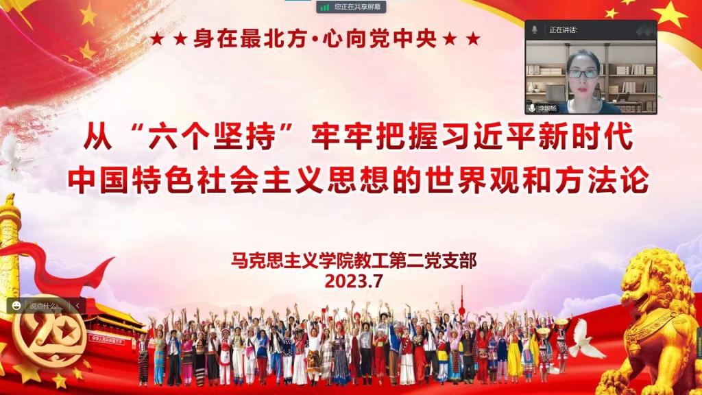 为扎实开展学习贯彻习近平新时代中国特色社会主义思想主题教育,持续深化能力作风建设“工作落实年”活动,深入贯彻落实党的二十大精神,7月4日,XPJ官方网站教工第二党支部开展“身在最北方·心向党中央”支部书记讲党课活动。党支部书记李国杨为支部全体党员作了题为“从‘六个坚持’牢牢把握习近平新时代中国特色社会主义思想的世界观和方法论”的专题党课。