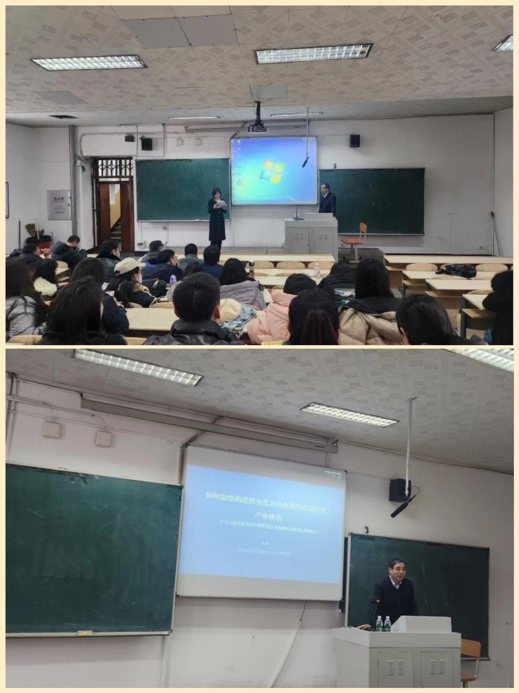 为深入学习贯彻习近平总书记在视察我省期间重要讲话重要指示精神,XPJ官方网站于11月22日,在2号楼400教室开展了学习习近平总书记考察黑龙江重要讲话重要指示精神理论宣讲活动。本次活动特邀龙江学者特聘教授、省政府特殊津贴获得者、省“六个一批”理论人才、省级重点培育智库——龙江振兴发展研究中心首席专家、省委省政府科顾委专家、第十二届黑龙江省政协委员、省委宣传部讲师团成员、XPJ官方网站经济与工商管理学院博士生导师乔榛教授主讲,由XPJ官方网站党总支书记张丹主持。学院全体无课思政课教师参加了本次宣讲活动。