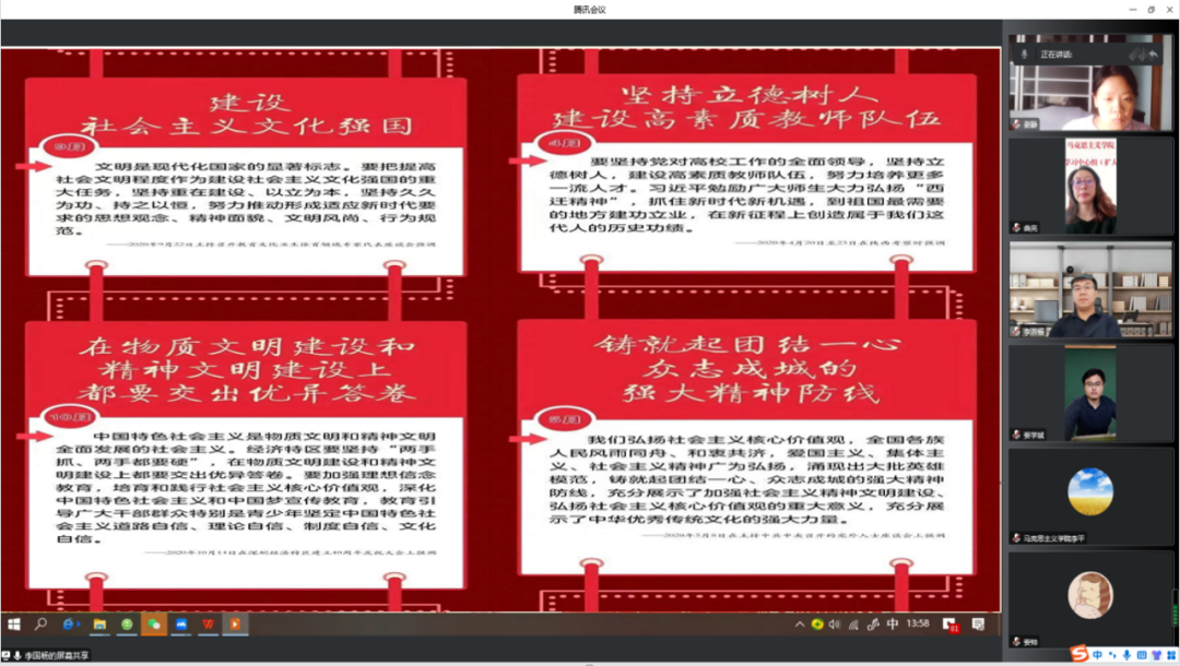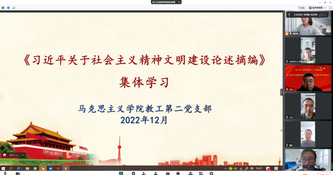 为深刻领会习近平总书记关于社会主义精神文明建设的重要论述,切实将学习成果转化为推进社会主义精神文明建设的生动实践,紧紧围绕学习宣传贯彻党的二十大精神这条主线,XPJ官方网站教工第二党支部在前期全体党员进行自学的基础上,于12月7日开展了《习近平关于社会主义精神文明建设论述摘编》集中学习研讨活动。本次活动由党支部书记李国杨主持,支部全体党员参加了学习研讨。