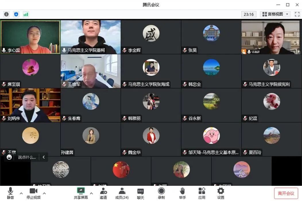 谷真研领学完成后,党支部各位成员积极分享学习心得,对于党的二十大精神及如何融入思政课进行了热烈研讨。