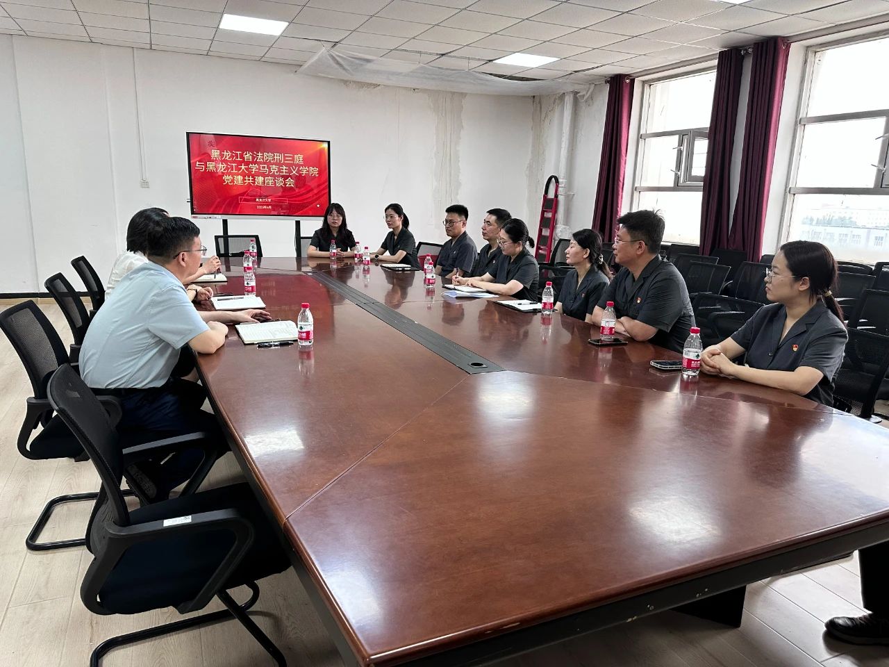 随后,双方围绕党建工作经验、法治人才培养、司法实践与理论研究结合等议题展开深入交流,就如何加强基层党建工作、开展支部联合共建等问题进行了探讨。