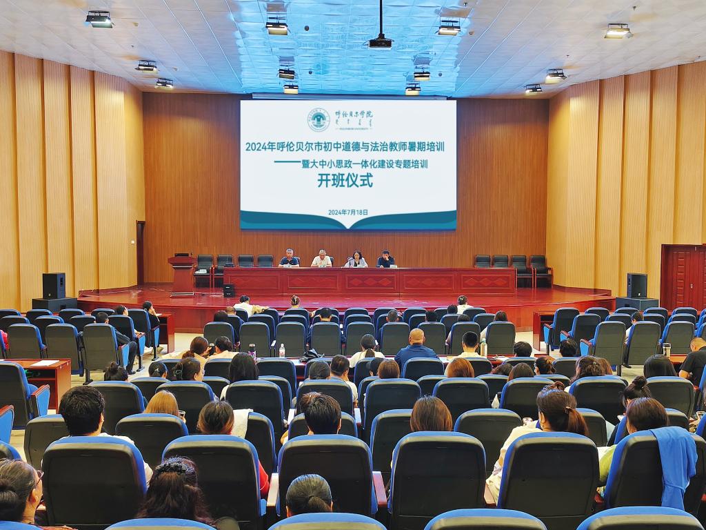 为深入落实党中央、国务院关于深化新时代学校思想政治理论课改革创新的决策部署,积极推动大中小学思政课一体化建设,继续教育学院与beat365唯一官方网站联合举办呼伦贝尔市初中道德与法治教师暑期培训——暨大中小学思政课一体化建设专题培训。7月18日上午,开班仪式在beat365官网图书馆四楼报告厅举行。继续教育学院党总支书记李健,beat365唯一官方网站院长吴秀芳,继续教育学院副院长汪鑫、安永红,beat365唯一官方网站思政课教师团队以及106名初中道德与法治教师参加了开班典礼。